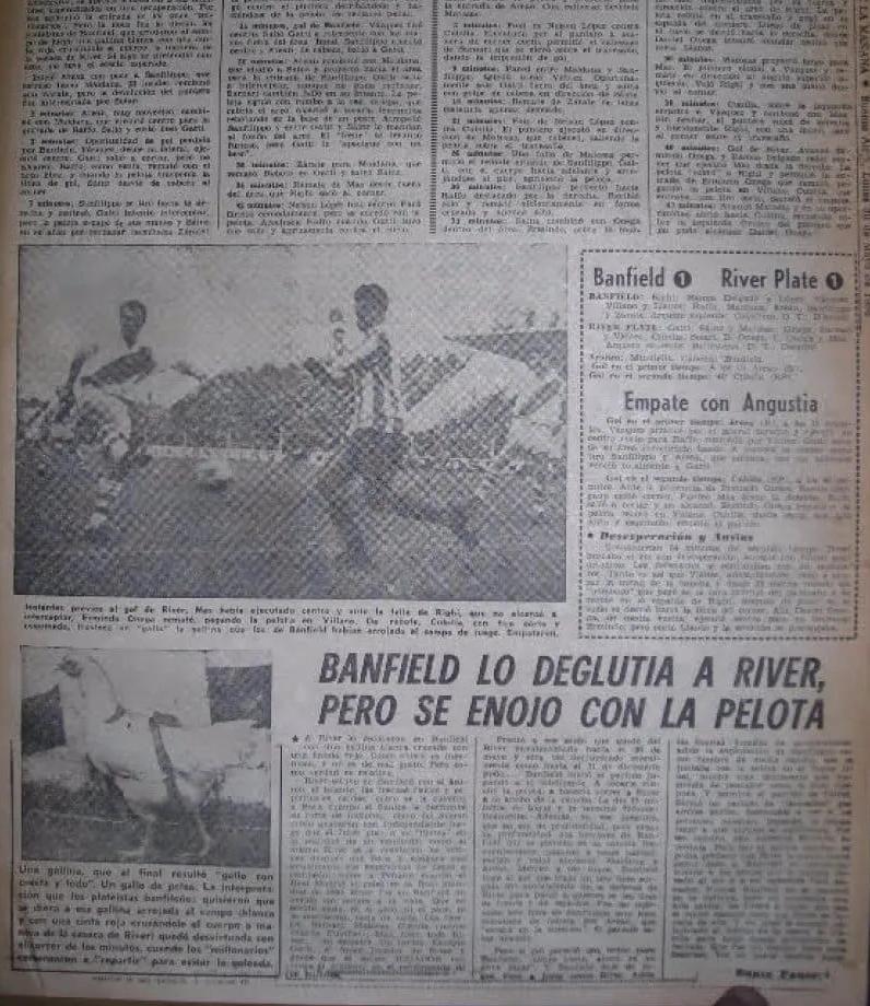En aquel año, River desperdició una increíble final en Chile: arrancó ganando 2 a 0 pero en el segundo tiempo perdió 4 a 2. Al regresar a la Argentina para el partido siguiente del torneo local, la hinchada de Banfield recibió a River con una gallina pintada de rojo y blanco dentro de la cancha.