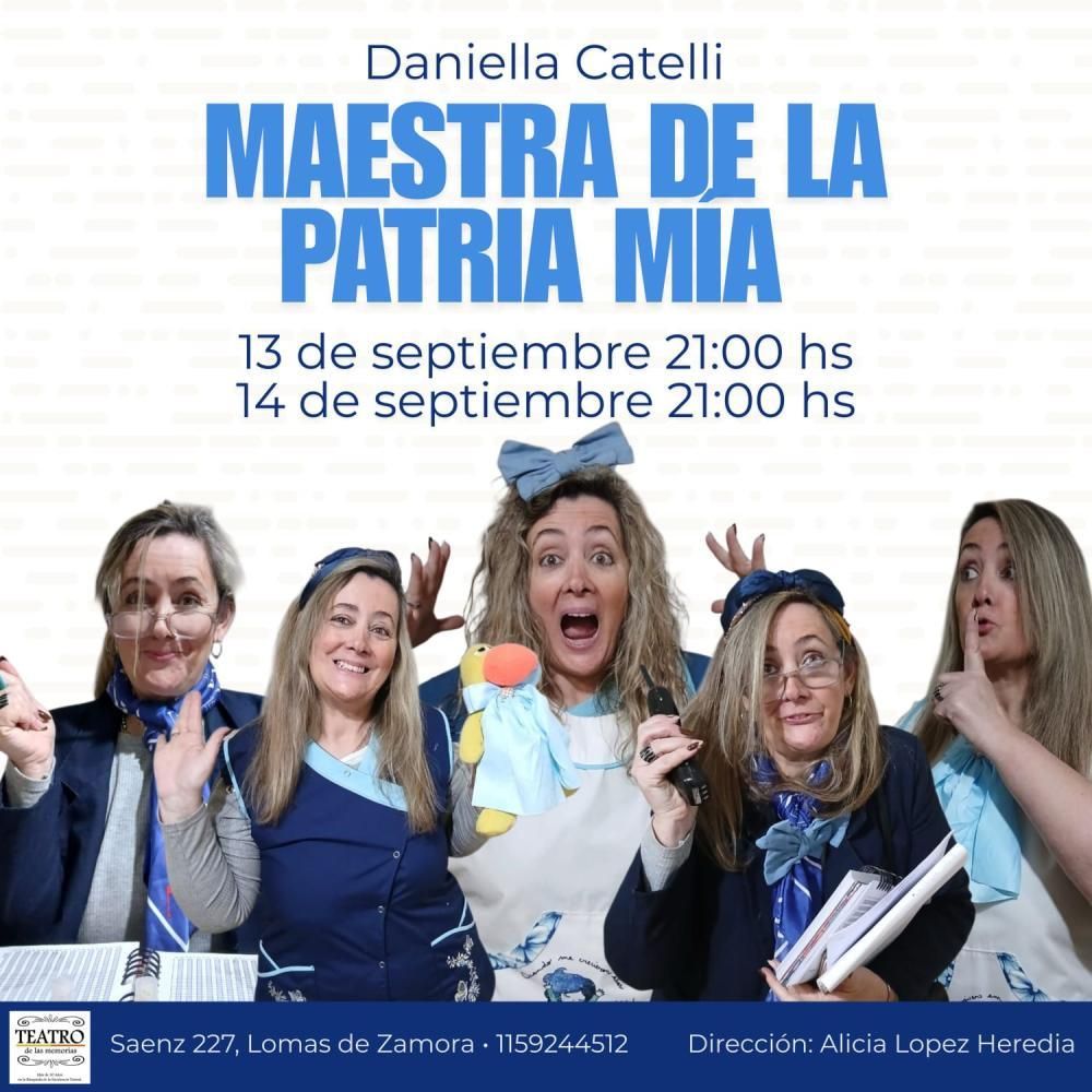 Educación y humor. De eso se trata el unipersonal "Maestra de la patria mía" que pondrá en escena la docente lomense Daniella Catelli, el cual se estrenará en septiembre en el Teatro de las Memorias. El espectáculo, que tendrá dos funciones el sábado 13 y el domingo 14 (desde las 21), pondrá a reflexionar a los espectadores respecto a la situación educativa que atraviesa el país.