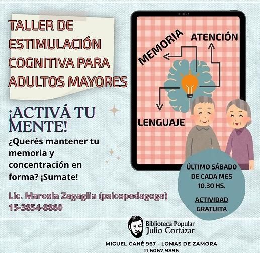 Los que asistan al encuentro de este sábado deben tener en cuenta que la profesional brindará una serie de actividades individuales, grupales, orales y escritas para estimular las funciones cognitivas superiores.