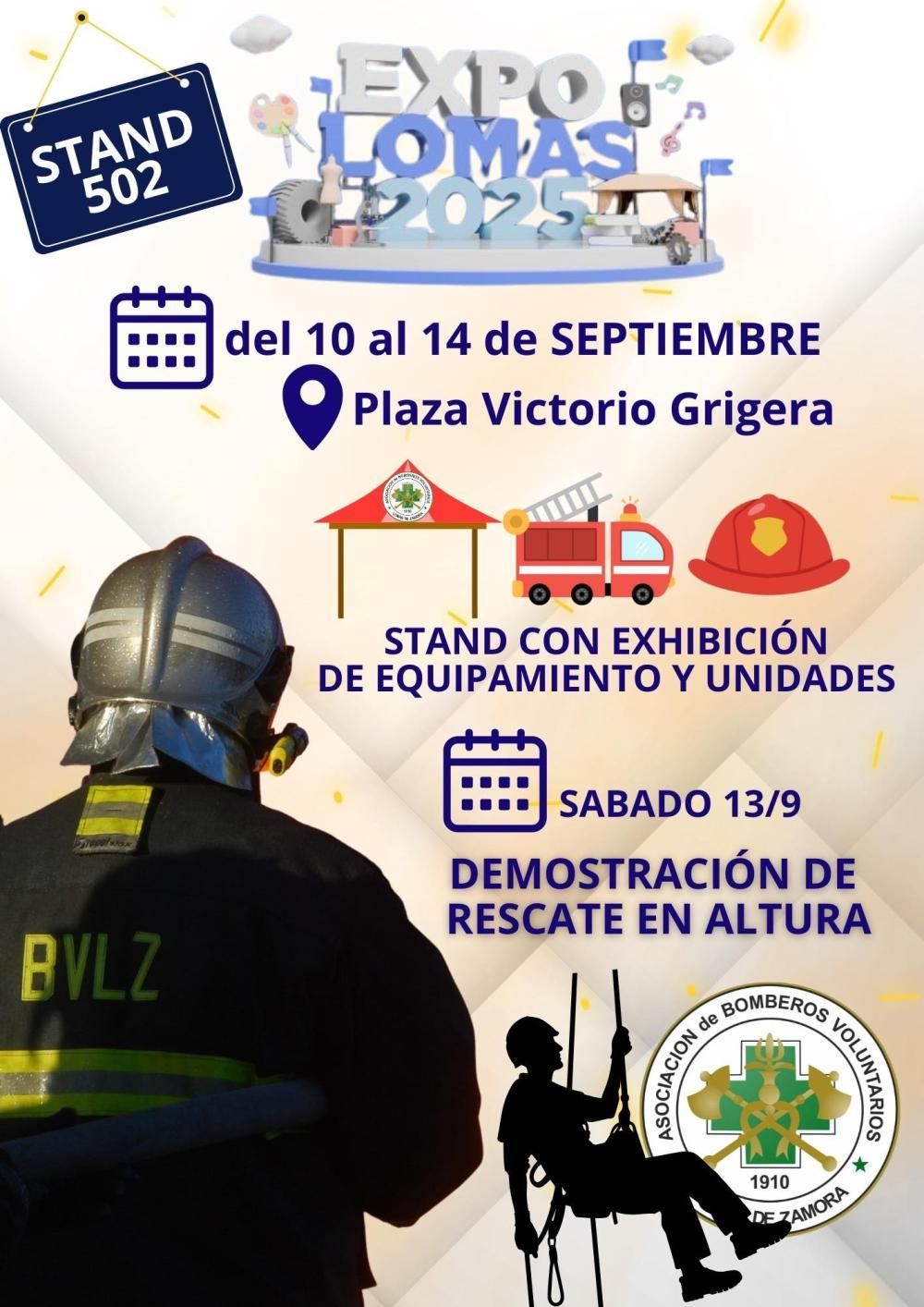 A través de las redes sociales, los Bomberos Voluntarios de Lomas aseguraron que estarán presentes en la Expo Lomas 2025. Los vecinos los podrán encontrar en el stand 502, un espacio que estará dedicado a mostrar los diferentes equipamientos que utilizan los bomberos ante cada siniestro, como así también las variedades de unidades que tienen a disposición en el cuartel y en los destacamentos.