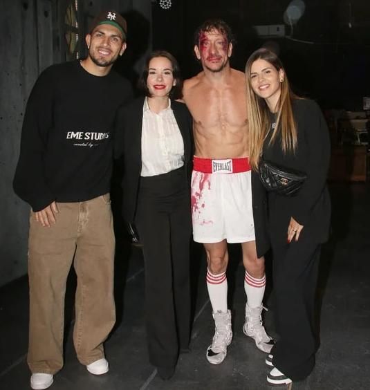La pareja fue al Teatro Lola Membrives para ver su obra "Rocky" y luego de sacaron una foto con Nico Vázquez, el protagonista de la puesta.