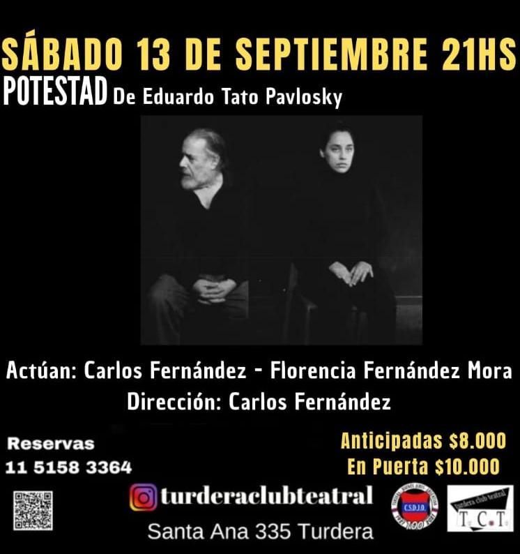 La versión que se podrá ver en el Club Juventud Obrera está dirigida por Carlos Fernández, quien además es el protagonista de la obra y estará acompañado por Florencia Fernández Mora. "Potestad" se considera una de las obras más significativas del teatro argentino, estando estrechamente ligada al pasado violento vivido por los argentinos durante la dictadura.