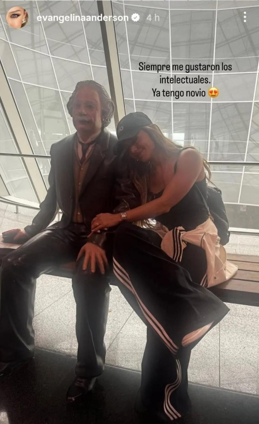 Durante el viaje, publicó una filosa historia en sus redes sociales con una inesperada declaración. "Siempre me gustaron los intelectuales. Ya tengo novio", bromeó junto a una foto en la que aparece abrazada a una estatua de Albert Einstein en el aeropuerto de Frankfurt.
