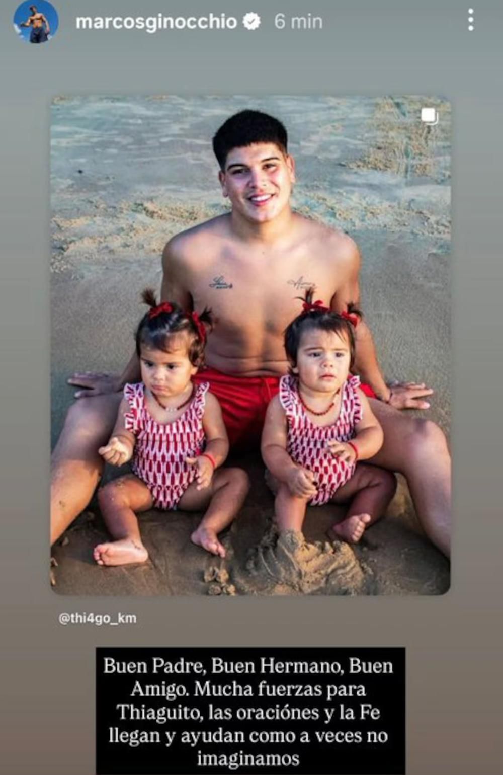 La reacción de Marcos se sumó a la de otros excompañeros del reality, como Julieta Poggio, Romina Uhrig y Nacho Castañares, quienes también manifestaron su preocupación y pidieron acompañar a la familia de Thiago con mensajes de aliento y oraciones.
