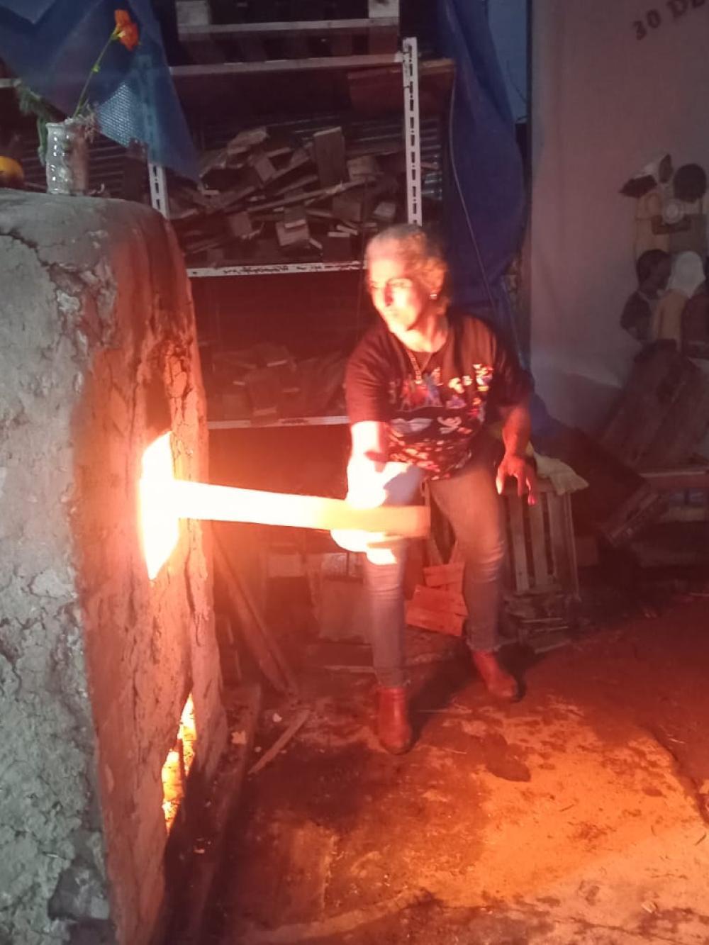 "Antes, se cavaba el horno en la montaña y se utilizaba la pendiente como tiraje. Hoy se arma el horno que es como una cueva y los alumnos se meten adentro, ponen las piezas, salen y empiezan a poner leña", detalló Mario Domínguez, director de la escuela.