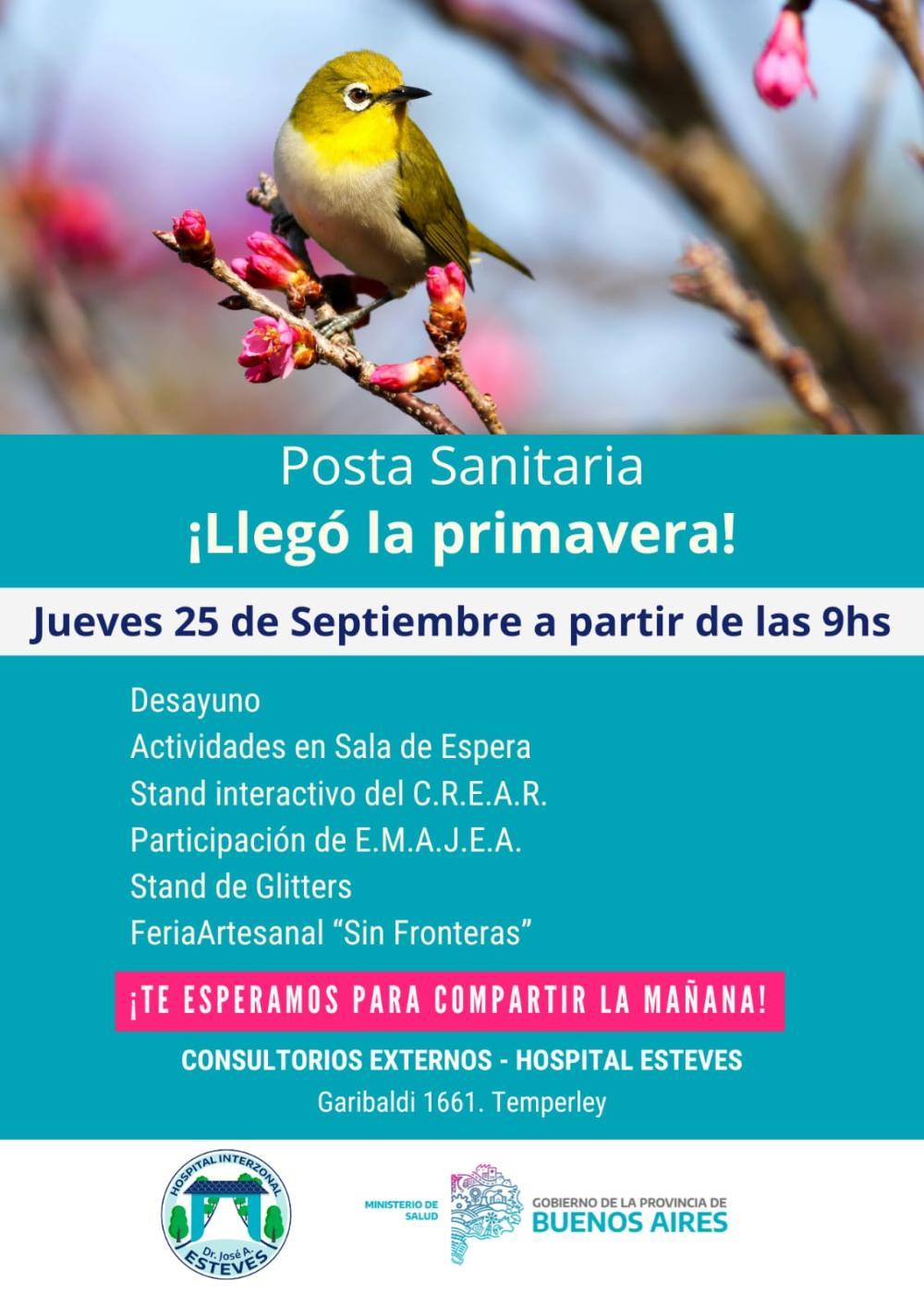 Con motivo de la llegada de la primavera, el Hospital Esteves realizará este jueves, a través del servicio de consultorios externos, una nueva posta sanitaria que tiene como objetivo acercar a los vecinos a la institución y compartir un lindo momento mientras los pacientes esperan ser atendidos por los profesionales. Habrá actividades recreativas, stands y hasta una feria, todo gratuito.
