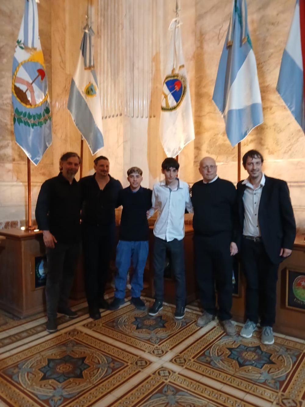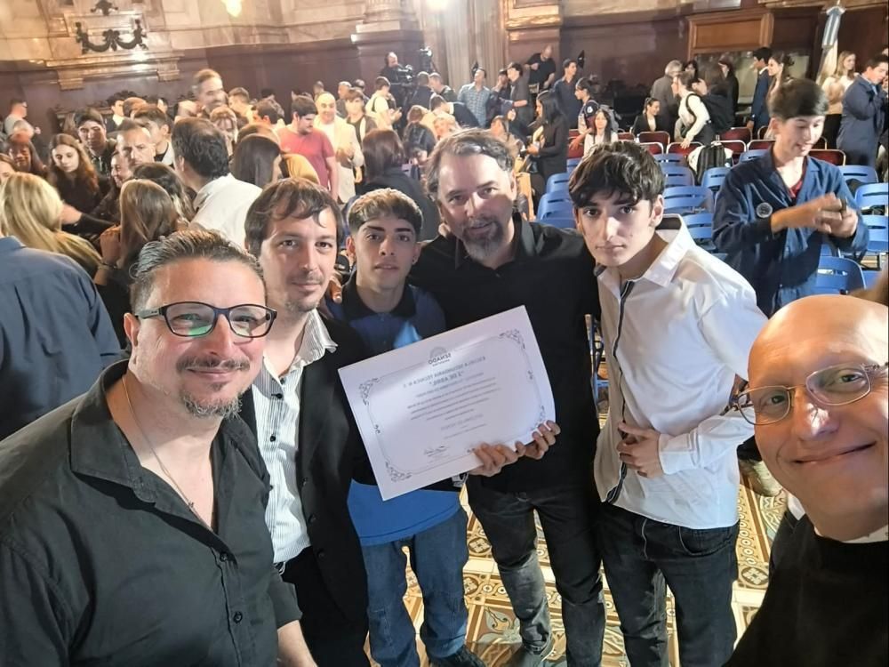 El director de la institución, Sandro Amiel; los profesores Pablo Enjo, Sergio Blanquer y Antonio Cuella; y los alumnos Luca Osuna y Luca Rubiera fueron distinguidos ante la presencia de diversas autoridades nacionales y locales, entre ellas el senador Eduardo "Wado" de Pedro y el Secretario de Educación de Lomas, Darío Spampinato.