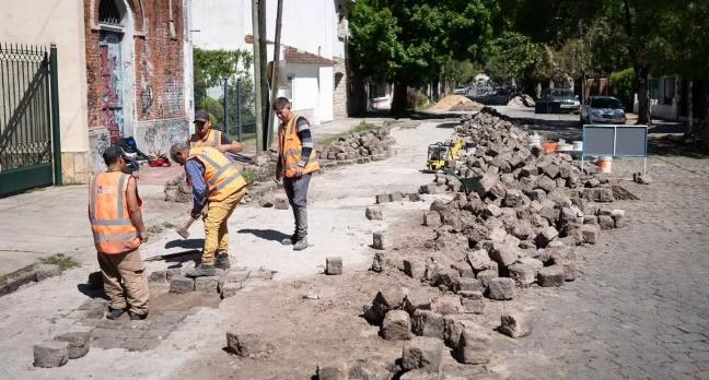 Recientemente se terminaron las obras en las calles España, Pringles, 25 de Mayo y Vago, y los trabajos continúan en distintos frentes y etapas para la restauración del adoquinado.