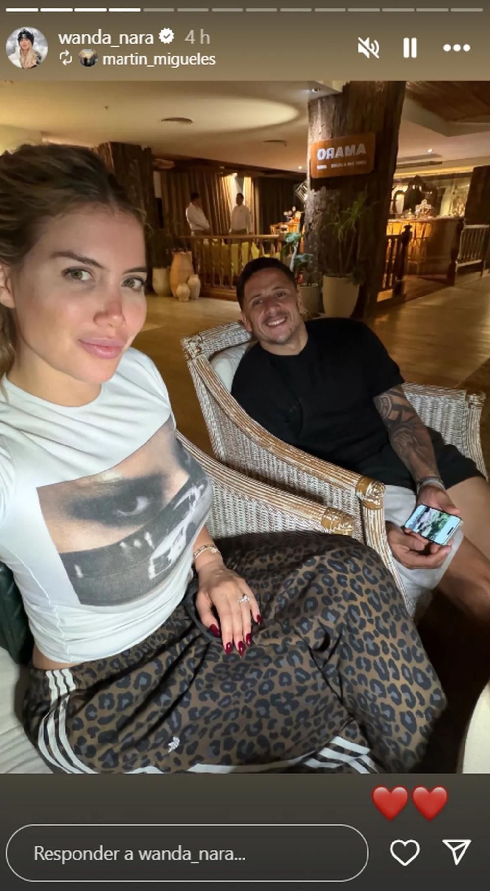 En la foto, ambos aparecen sonrientes, relajados y compartiendo un momento íntimo. El detalle que selló la confirmación fueron dos corazones rojos que acompañaron la imagen. La postal fue tomada en un hotel de Misiones donde Wanda viajó con sus hijas para aprovechar el fin de semana largo.