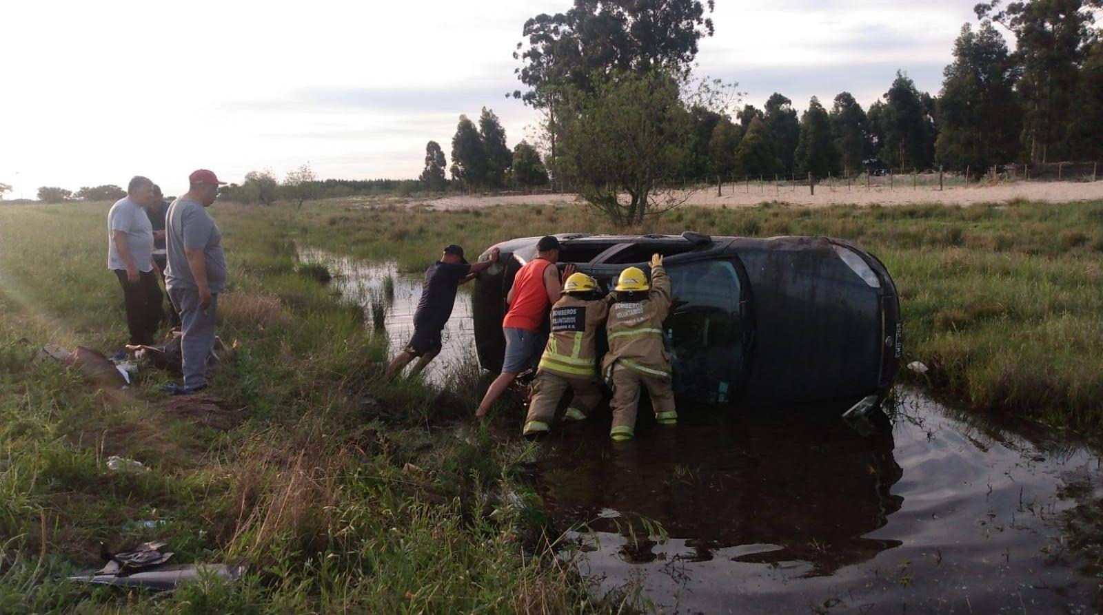 RUTA 12. Ocurrió en la ciudad entrerriana de Médanos. El conductor perdió el control del auto y no pudo evitar el vuelco.