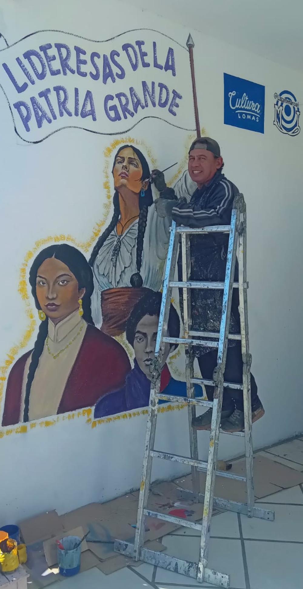 El artista lomense Marcial Lazarte inauguró recientemente un nuevo mural ubicado en el Centro Integrador Comunitario (CIC) de Ingeniero Budge, espacio que ahora cuenta con su obra de arte que plasma la figura de tres grandes heroínas de la Patria Grande como Juana Azurduy, Micaela Bastidas y María Remedios del Valle, mujeres que lideraron la lucha por la independencia en América Latina.