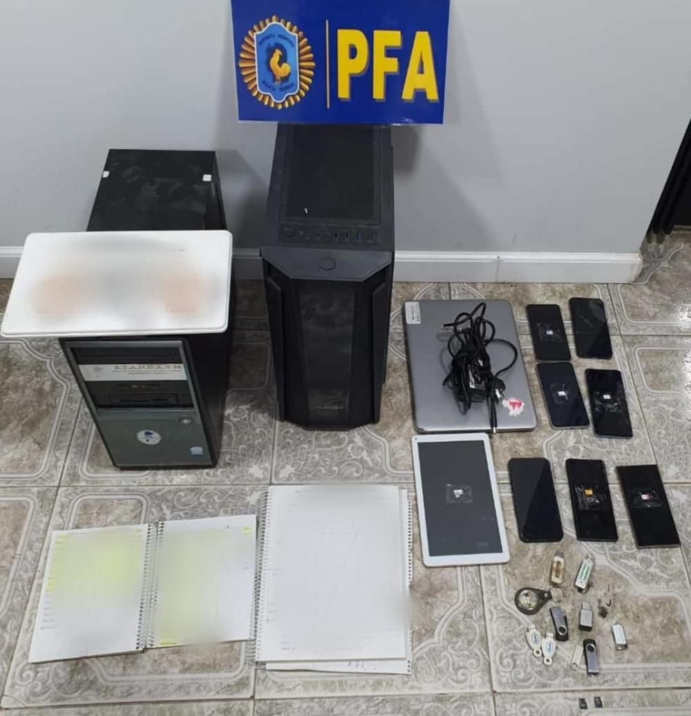 Por otro lado, secuestraron 1,8 kilos de cogollos de marihuana, 30 banners con publicidad de las plataformas de juego, folletos publicitarios de las plataformas, cuadernos con anotaciones de las apuestas, pagos, ganancias de las apuestas, tres autos, una camioneta, 80 teléfonos celulares, computadoras, notebooks y demás elementos de interés.