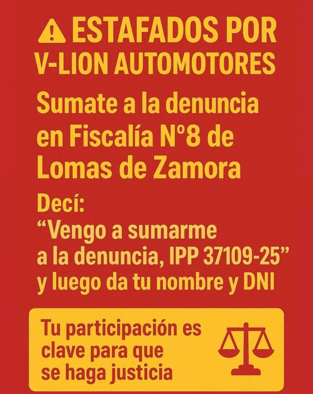 Las personas que habrían sido víctimas de V-lion Automotores, la concesionaria de Temperley acusada de estafas, comenzaron una campaña por redes sociales para reunir las denuncias en una sola causa.