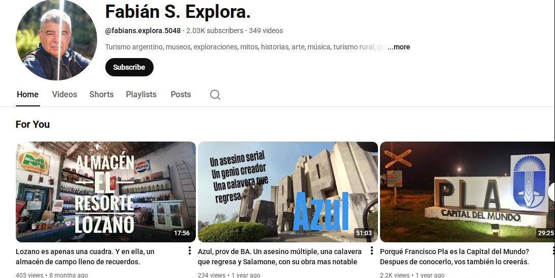 La descripción de su canal dice: "Turismo argentino, museos, exploraciones, mitos, historias, arte, música, turismo rural, guía por Buenos Aires, personajes". Un ensamble informativo amplio y ambicioso propio de un periodista con experiencia en distintos rubros.