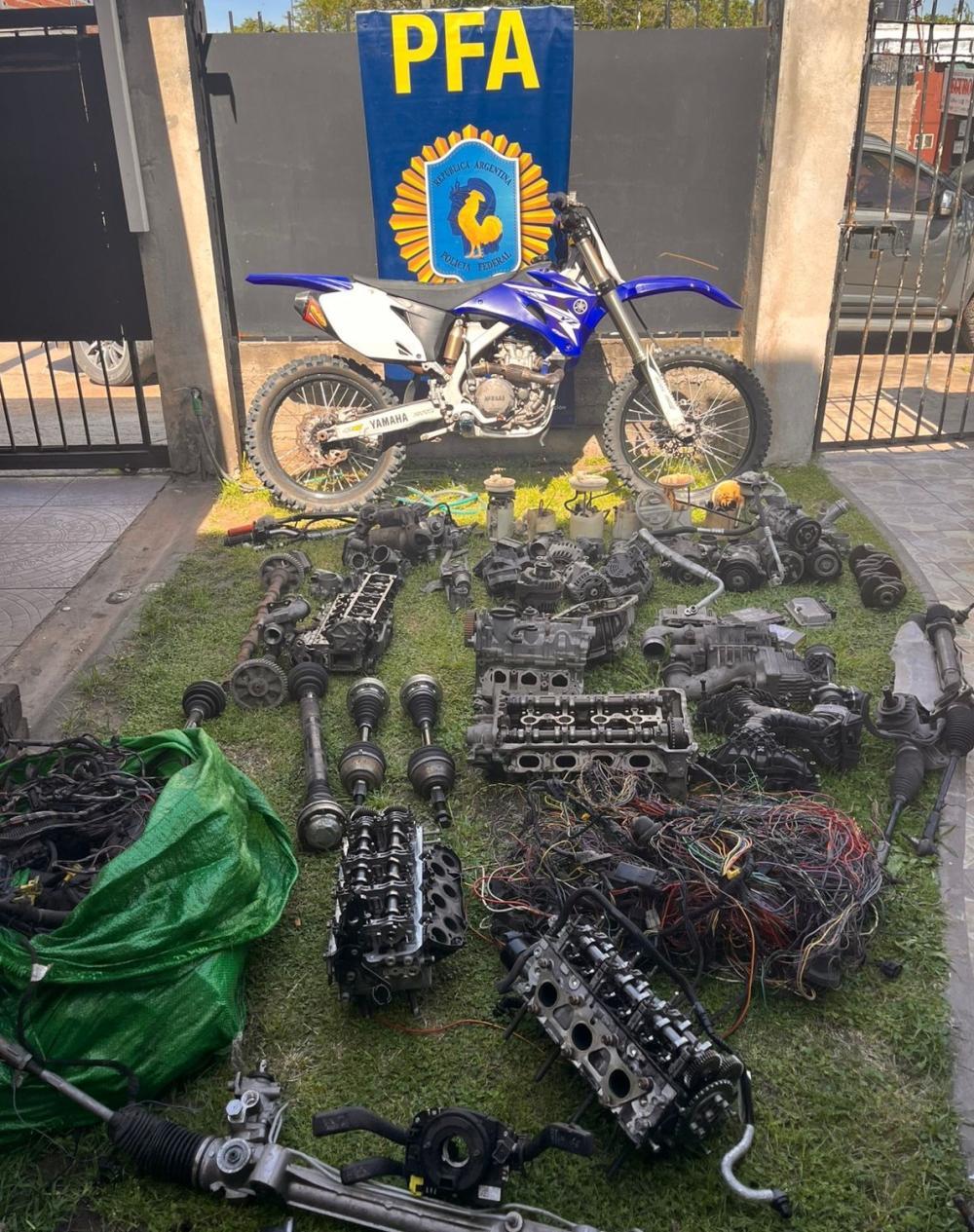 Además, incautaron varias autopartes como tapas de cilindro, bombas de combustible, alternadores, instalaciones eléctricas, compresores de aire, cuerpo mariposa, semiejes y ecus, parabrisas con numeración suprimida, una puerta de un vehículo, plásticos del interior de automóviles, bomba de nafta, ruedas, radiadores, trenes delanteros, tableros, airbags, frenos traseros, cuatro estéreos, ocho tableros, cinco faros traseros, un caño de escape, un paragolpes y dos columnas de dirección. Todo esto tenía un valor estimado de 30 millones de pesos.