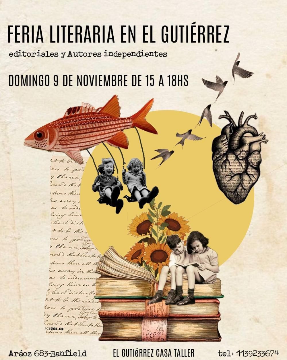 Por primera vez presentarán en El Gutiérrez Casa Taller ubicado en Banfield, una feria literaria donde participarán editoriales, autores y librerías independientes. La iniciativa se desarrollará el domingo 9 de noviembre en el horario de 15 a 18 en las instalaciones del espacio, en Aráoz 683 y la entrada será libre y gratuita.