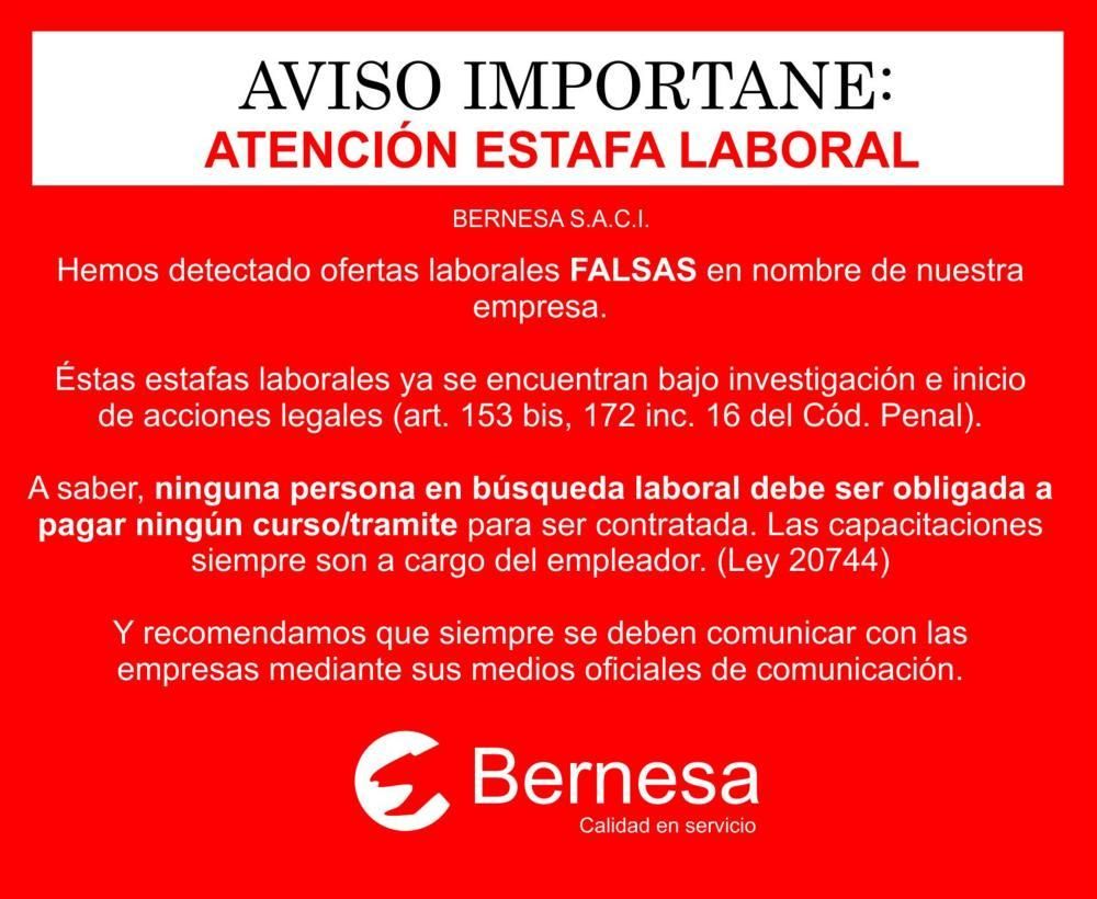 Advertidos de lo ocurrido, Bernesa tomó cartas en el asunto y publicó un comunicado para dar a poner a conocer la estafa laboral.