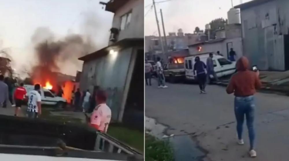 En los videos filmados por testigos, se ve a un grupo de personas en frente de la vivienda de los fallecidos, con un foco de incendio evidente, mientras arrojan piedras y pintan "violadores" en la pared, con aerosol.