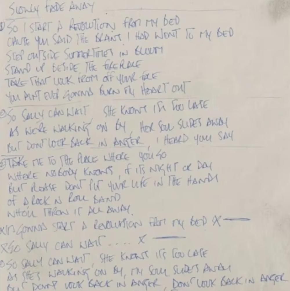 La letra fue escrita con un bolígrafo azul sobre un papel arrugado y amarillento. Es considerada como una de las canciones más importantes de Oasis que formó parte del exitoso segundo álbum de la banda, "(What's the Story) Morning Glory?", de 1995.