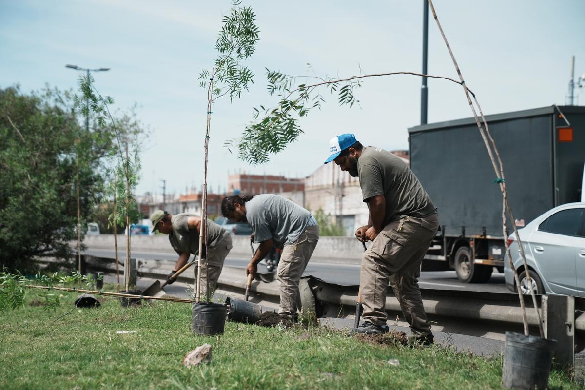 Ambiente. El Municipio avanza con el programa de forestación para mejorar la calidad del aire en espacios públicos e instituciones de los barrios.