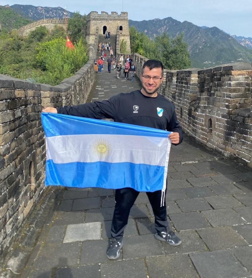 La imagen que se viralizó es del lomense en plena Muralla China con el buzo del Celeste y la bandera Argentina. "Tengo una gran pasión por Temperley porque allí conocí muy buenas personas. Desde que comencé a dar clases me trataron muy bien y además me ayudaron para que pueda viajar a China", contó Chaihort.