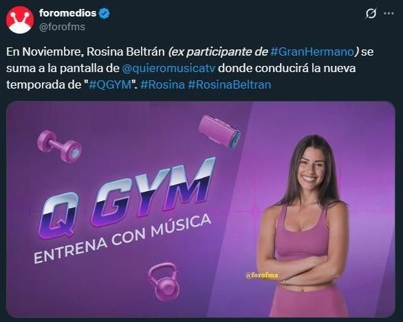 La uruguaya se sumará a la pantalla de "Quiero Música TV" donde conducirá la nueva temporada de QGYM, según confirmó la cuenta Foro Medios en X.