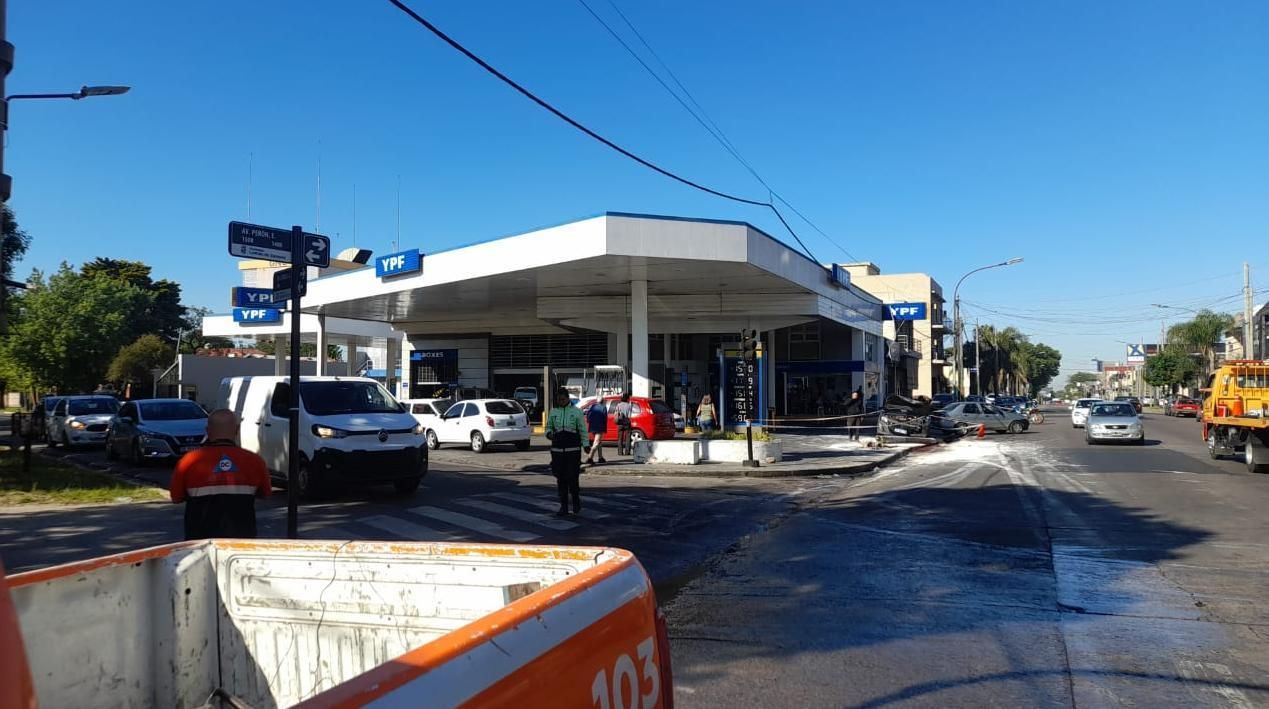 Todo ocurrió a sólo una cuadra del lugar donde chocaron un camión y un auto la semana pasada, en la avenida Eva Perón y Lautaro. Ese choque provocó la rotura del tanque de combustible del camión y se derramaron 150 litros de gasoil.