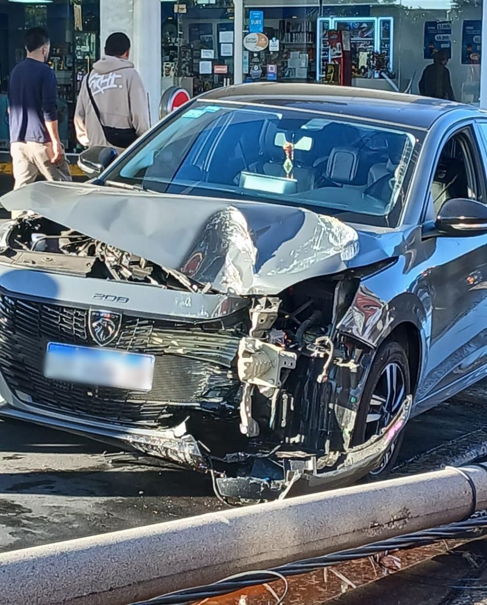 El protagonista fue un Peugeot 208 color gris. El conductor hizo una mala maniobra y terminó impactando contra un poste de luz y una columna de cemento. En consecuencia, el poste cayó sobre el asfalto y terminó arrastrando parte del tendido eléctrico.