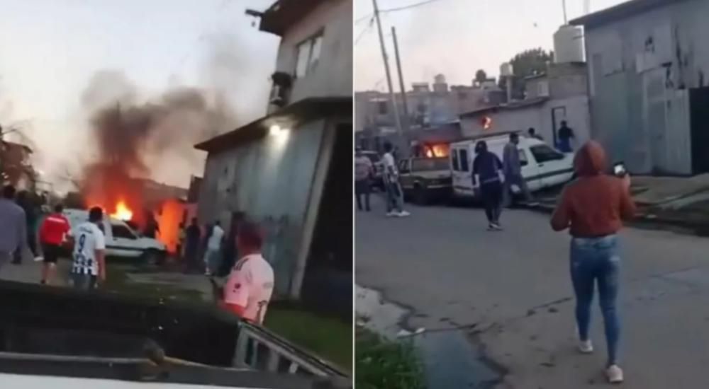 En los videos a los que tuvo acceso este medio, se ve a un grupo de personas en frente de la vivienda de las víctimas, con un foco de incendio evidente, mientras arrojan piedras y pintan "violadores" en la pared, con aerosol.